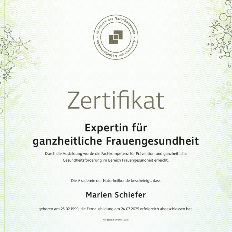 Mein Wissen basiert auf einer Mischung aus Wissenschaft, Praxis und echtem Verständnis für Frauengesundheit. Nach meinem Bachelor in Sportwissenschaften und dem Master in Gender Studies habe ich mich zur Expertin für ganzheitliche Frauengesundheit an der Akademie der Naturheilkunde (AKN) ausbilden lassen.